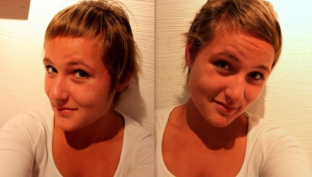 Huomaatteko eron kesäkuun ja tän hetken välillä?!! Mä huomaan. Enää pari senttiä, niin otsis yltää kunnolla kulmakarvoihin. Eli tämä ilon hetki koittanee noin kuukauden kuluttua, jos tukka kasvaa samaa vauhtia mitä tähänkin asti. Voiko ihminen oikeesti olla iloisempi? Sillon ku mun hiiskut alko tippua, jäin eniten kaipaamaan otsista. Mulla on suht korkee otsa, ja näytän vähä hassulle ilman kasvoja kehystäviä hiuksia. Otsis antaa naamalle mukavasti ryhtiä. Tää on huippu tunne huomata, että ensinnäkin alan jo tunnistaa itteni peilistä, plus että en näytä enää syövän sairastaneelta! Me so happy.